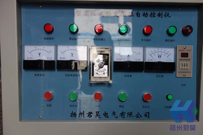 4、在升壓或耐壓試驗過程中,如出現短路、閃絡、擊穿等過電流時,電流繼電器保護跳閘,調壓器自動斷電,表示被試品不合格,此時應將調壓器回零,切斷電源,檢查被試品。