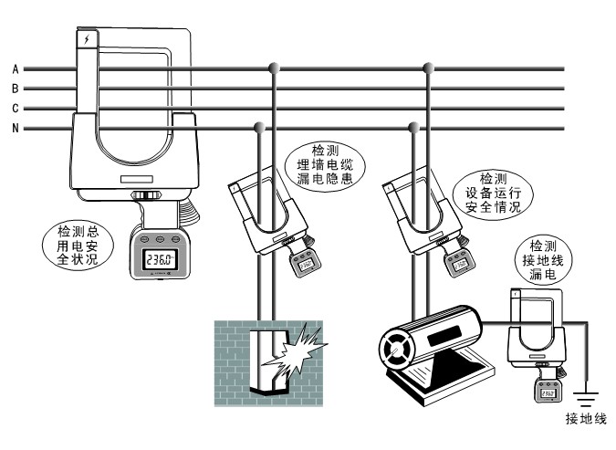 ETCR7000大口徑鉗形漏電電流表其鉗頭鐵芯選用特殊合金,采用磁性屏蔽技術,幾乎不受外界磁場的影響,確保了常年無間斷測量的高精度、高穩定性、高可靠性。儀表具有RS232接口,可存儲200組數據,通過系統軟件上傳所存數據到電腦,實現在線實時監測與歷史查詢,動態顯示,具有歷史數據讀取、保存、打印等功能。儀表還具有背光功能、數據保持功能,是電工安全檢測的必備工具。