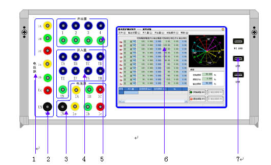 揚州君昊JHJB-6W六相微機繼電保護測試儀面板說明